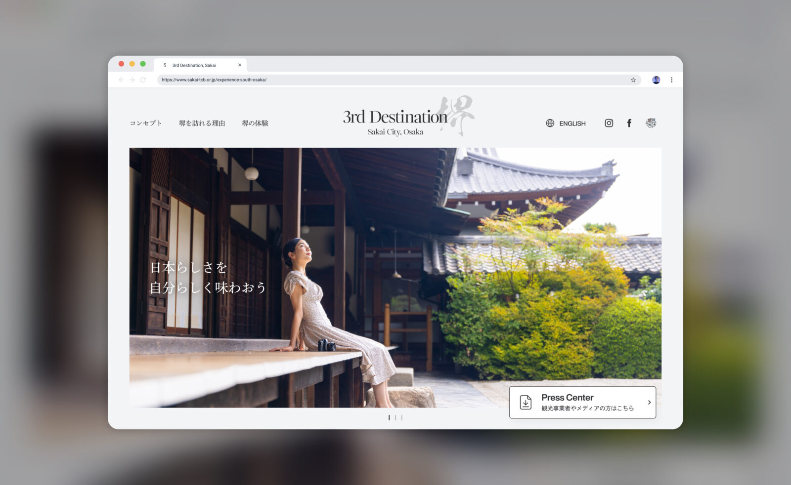 堺近郊の京都・奈良そして大阪が、多くの訪日外国人観光客で溢れかえりオーバーツーリズムの問題を抱える中で、堺は人混みを気にせず、日本らしい体験を、自分のペースでゆったりとお楽しみいただける「まだ知られていない隠れた歴史文化都市」ことを強みと捉えました。