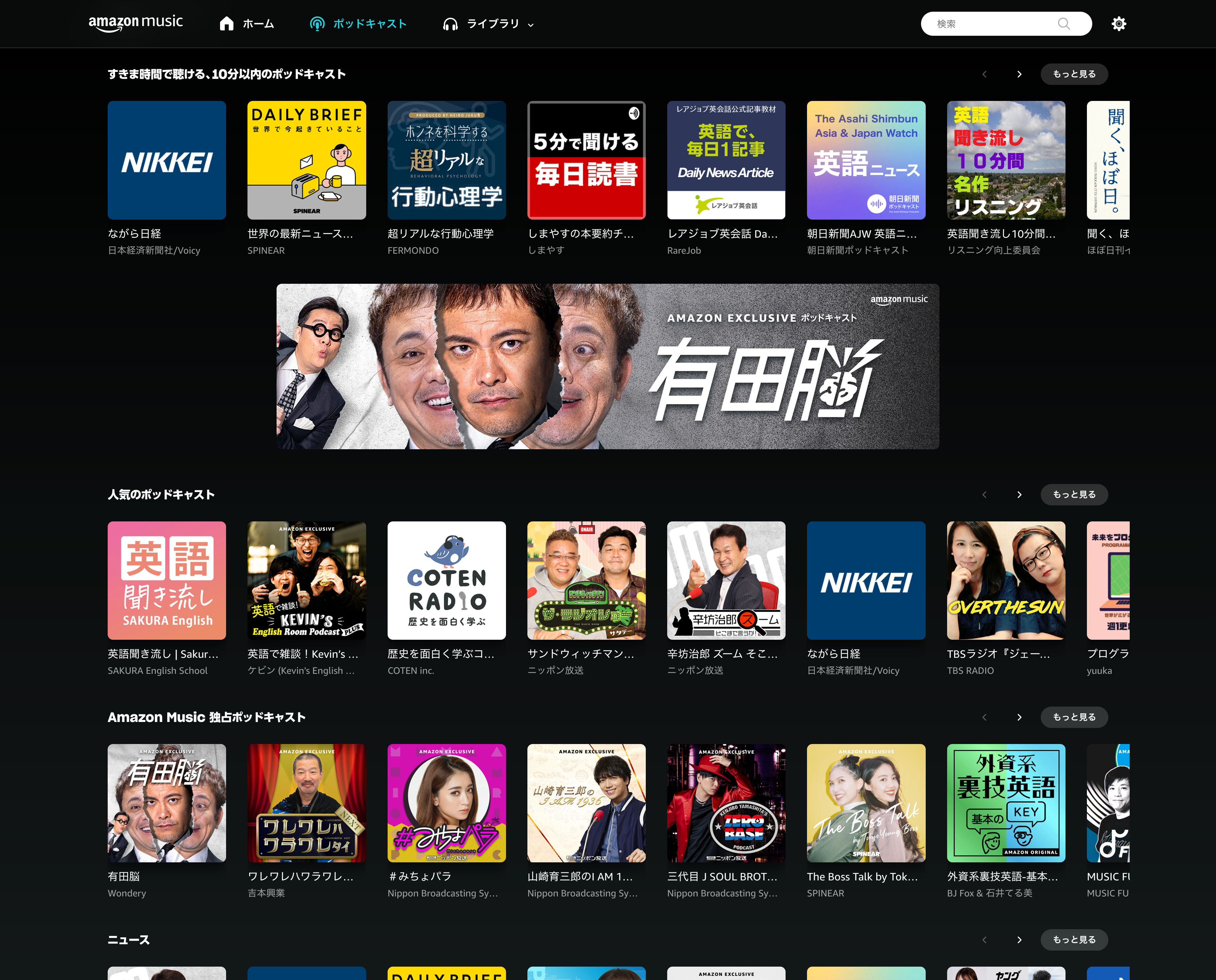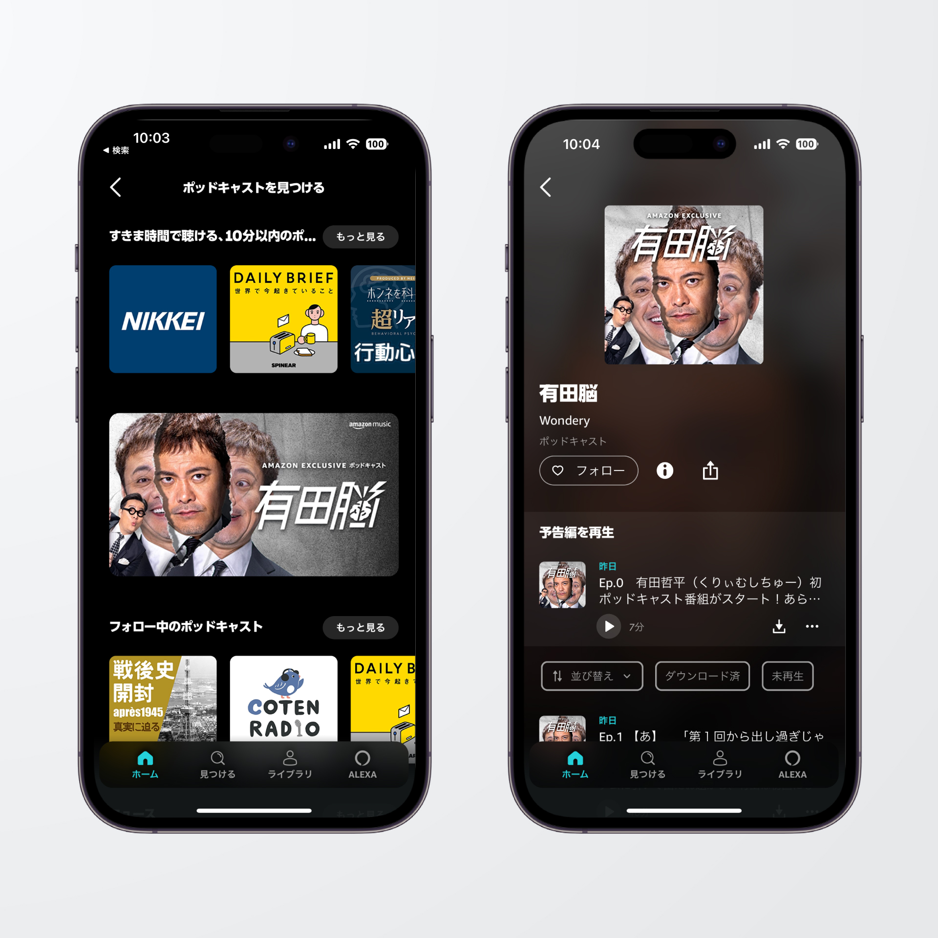 「有田脳」は、お笑い芸人・くりぃむしちゅー有田哲平が初めて挑戦するポッドキャスト番組です。なお、本番組は、Amazon Musicをご利用のすべての方にお楽しみいただけます。