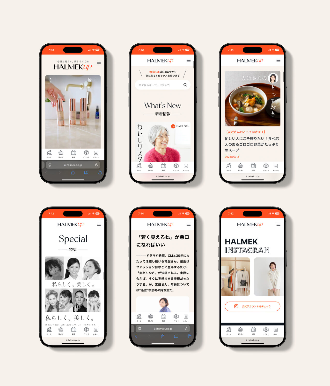 81plusはハルメクホールディングスが運営するのウェブメディアの戦略/コンセプト立案・UI/UXデザインおよび開発、映像やビジュアルなどのクリエイティブデザインを実施し、50代から60代の女性に向けた新しいコンテンツプラットフォーム「HALMEK UP」にリブランディングしました。