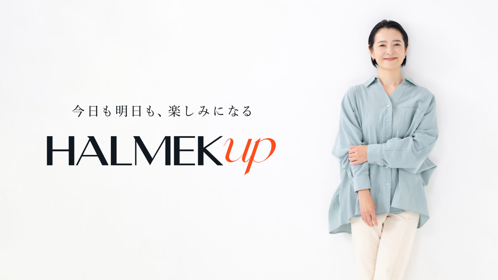 人生100年時代の現代において、人生の折り返しを迎えた50代から60代の女性が「今日も明日も、楽しみになる」をスローガンに、毎日をUPさせるという願いを込めて「HALMEK UP」と名付け、ロゴとアニメーションをデザインしました。
