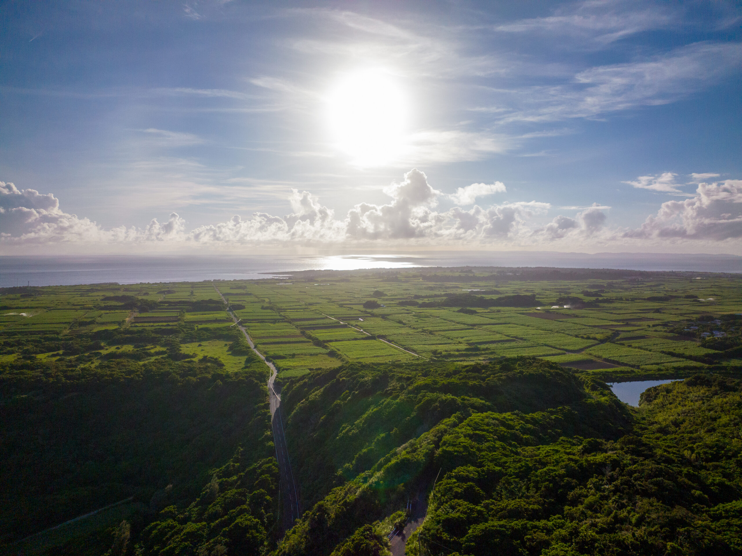 喜界島は鹿児島から南に約380km・奄美大島の東25km。太平洋と東シナ海のぶつかる洋上に浮かぶ隆起珊瑚礁の島です。 島の大半が隆起サンゴ礁で、今でも年間平均2mmずつ隆起し続けている学術的にも貴重な島です。 島一面にサトウキビ畑が広がり、サトウキビから作られる黒糖、黒糖焼酎は島の特産品となっています。また国内最大の白ゴマの産地としても知られています。 喜界島島内には奄美十景の1つ、百之台公園を始め、美しいスギラビーチやハワイビーチ、古くから残るサンゴの石垣など数々の名所があります。近年はダイビングスポットとしても注目をされています。