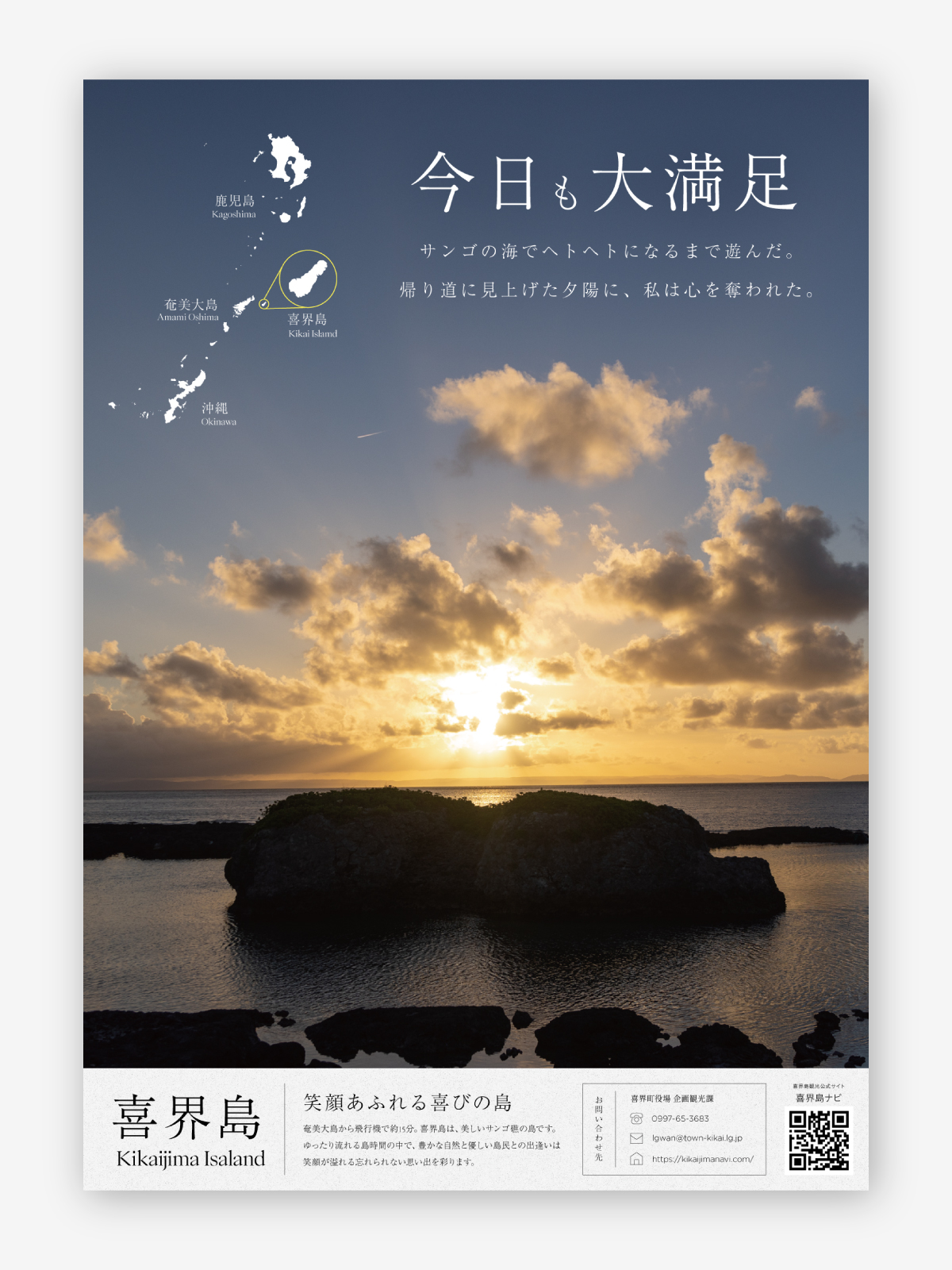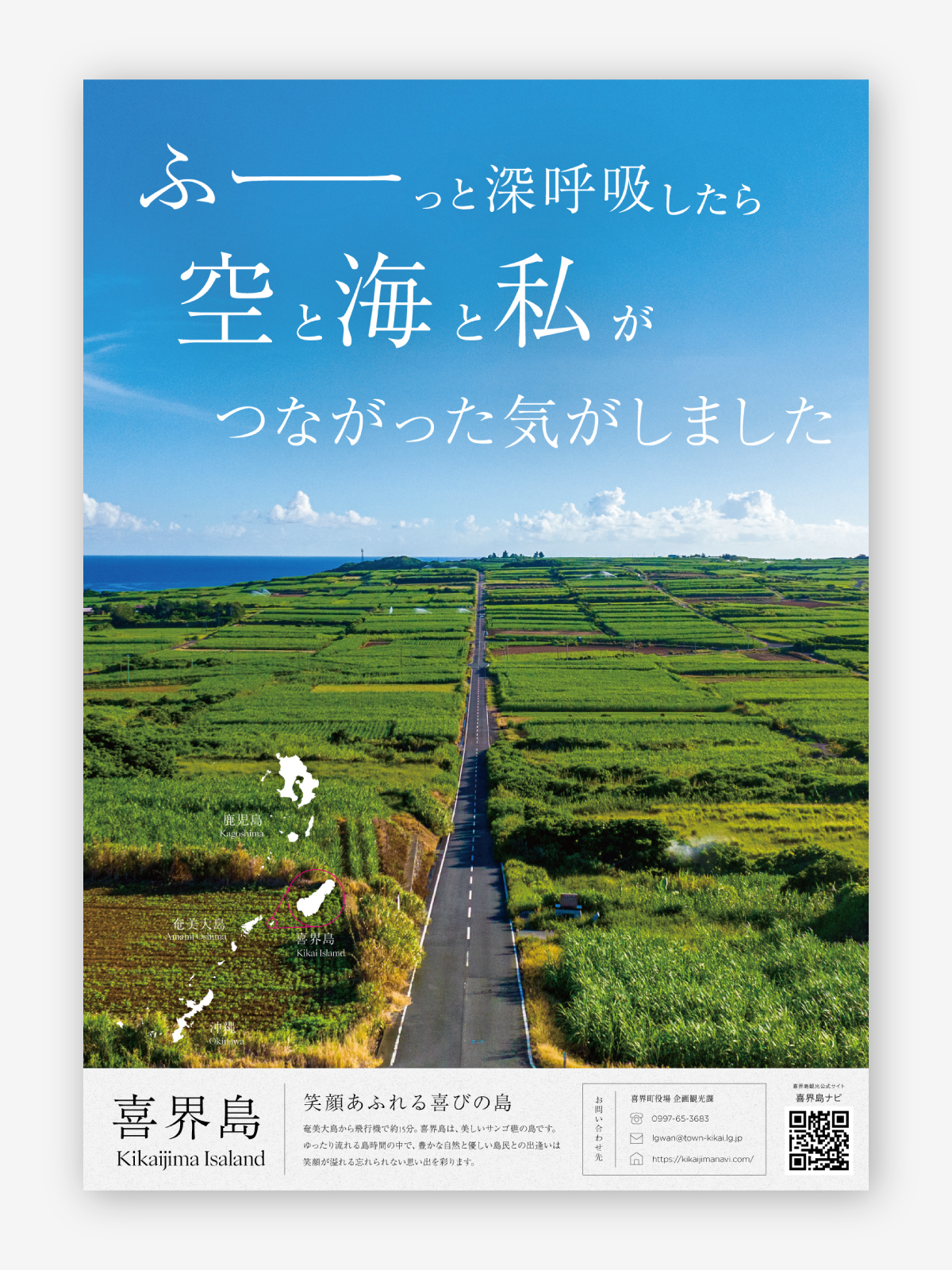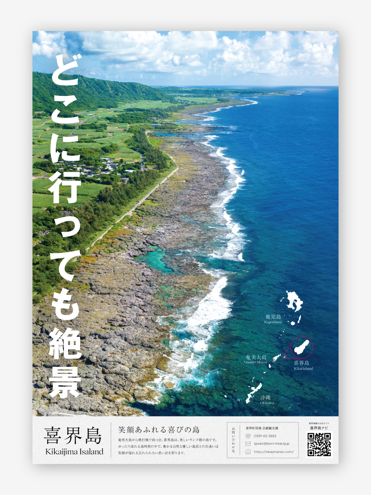 81plusは喜界町から委託を受け、喜界島のポスターを制作しました。昨年度の映像制作事業の際に撮影した写真を活用し、コピーライティングおよびグラフィックデザインを実施しました。