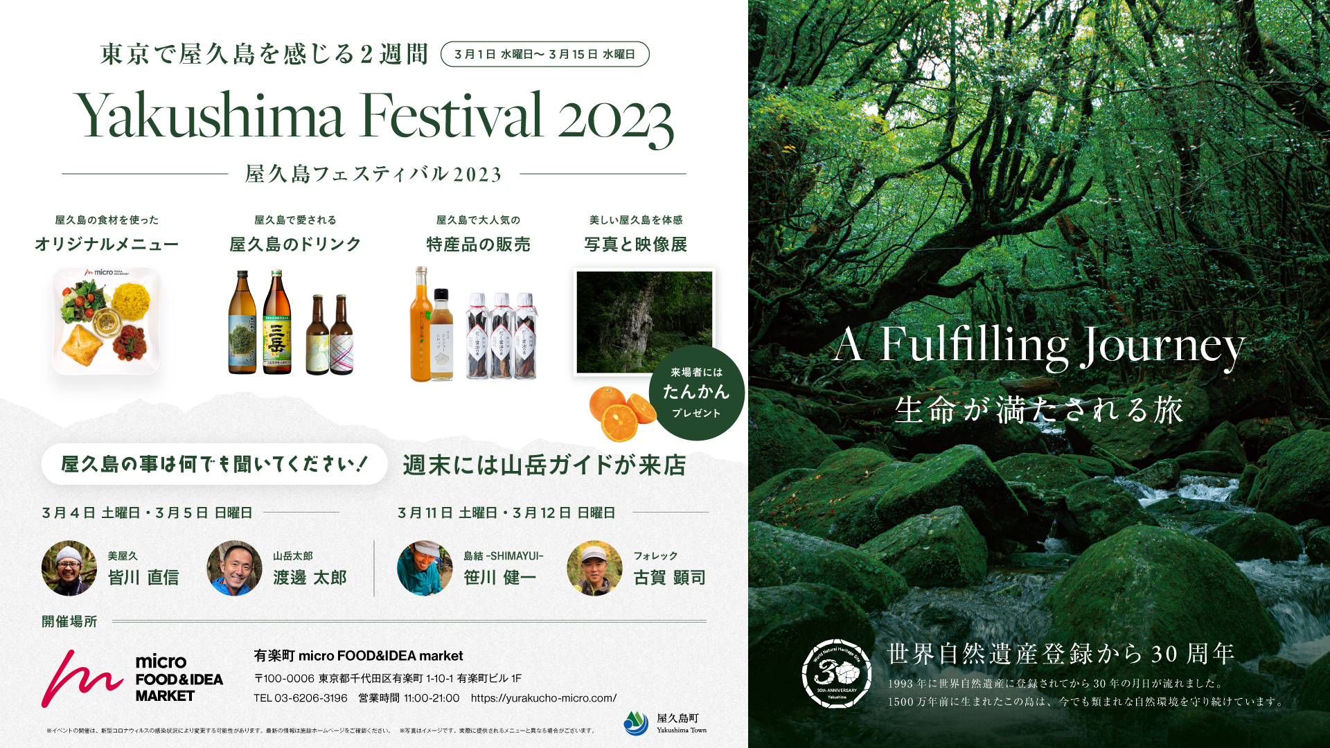 有楽町にて2023年3月1日〜3月15日までの1ヶ月間、屋久島の体験や食が都会の真ん中で味わえる屋久島フェスティバルを開催しました。