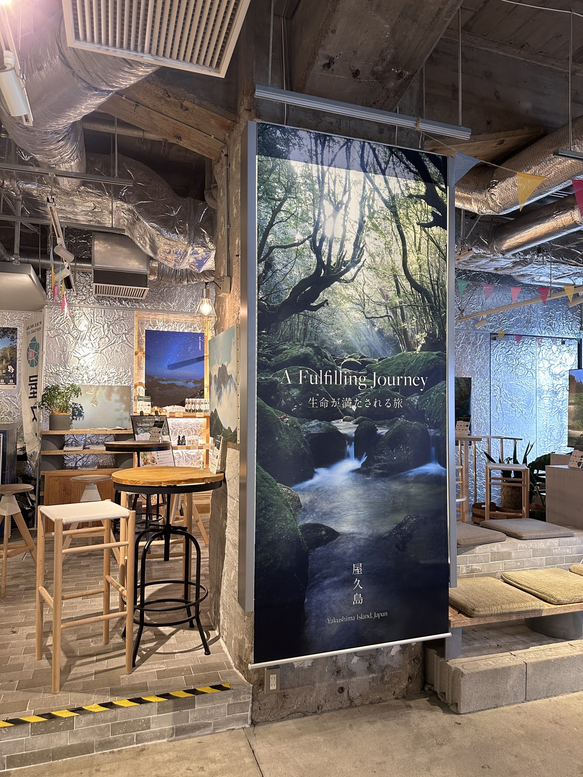 店内を映像やグラフィックなどで装飾し店舗をジャック、たんかんをはじめとした産品を販売し、オリジナルメニューを開発/提供しました。更に、週末は山岳ガイドが来店し、屋久島のリピーターと、屋久島に興味のあるがまだ来島したことのないお客様との交流を図りました。